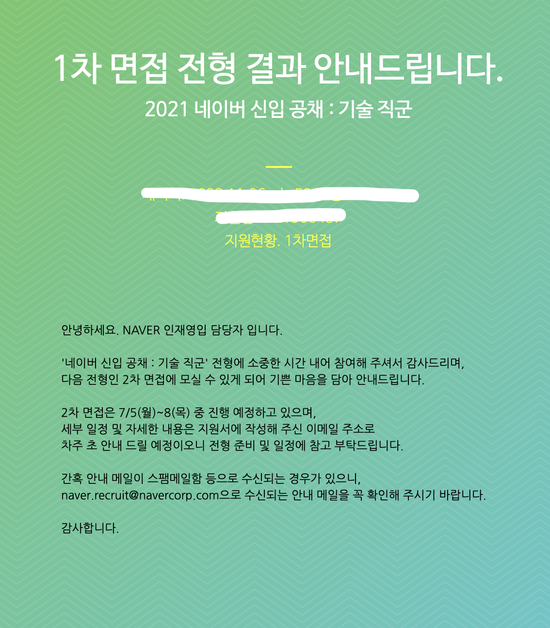 | 2021 네이버 상반기 공채 2차 인성 면접 후기 (3) | 2021.07.15 |